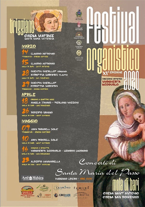 Il programma dell’undicesima edizione 2020 si è arricchita ulteriormente con la voce ritrovata dall’organo Consoli della Chiesa di Santa Maria Veterana di Triggiano, restaurato da Francesco Zonin. In tal modo, si coglie l’opportunità di ampliare l’offerta che l’Associazione Culturale Arte&Musica di Mola offre nell’undicesimo anno di attività grazie alla collaborazione recentemente avviata con la Fondazione Pasquale Battista di Triggiano unitamente all’Amministrazione Comunale di Mola di Bari.