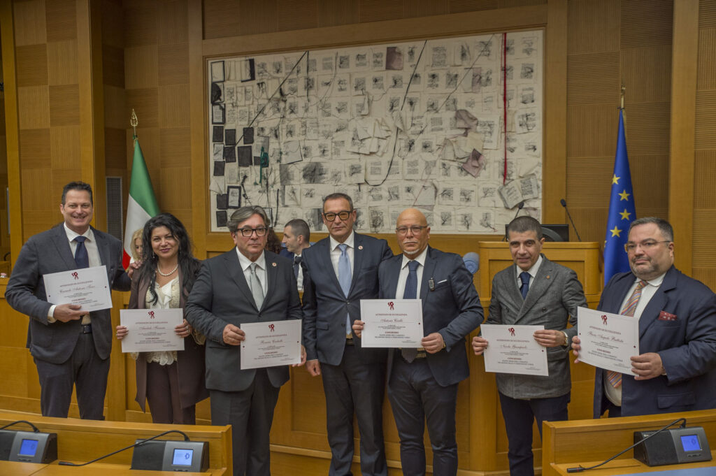 Il Presidente del Gruppo Augusta Ratio e della Fondazione Pasquale Battista, Flavio Augusto Battista, è stato premiato con un encomio a Roma, il 15 aprile 2025 presso l’Aula del Palazzo dei Gruppi Parlamentari, all’esito dei lavori congressuali della Conferenza Nazionale “Nuove sfide per l’umanità tra mondo reale e dimensione cyber” realizzata dal CREG (Centro di Ricerche Economiche e Giuridiche) con Medea ODV, istituzione che svolge attività di collegamento fra la società civile ed i Deputati e Presidenti di Commissioni Parlamentari.
